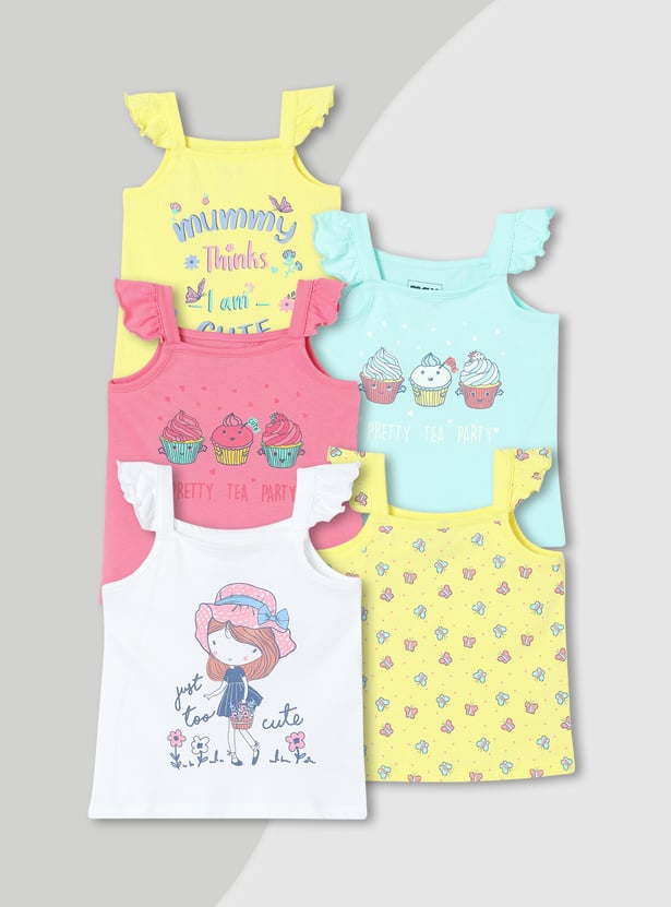 Girls Graphic Printed T-shirt - Pack of 5