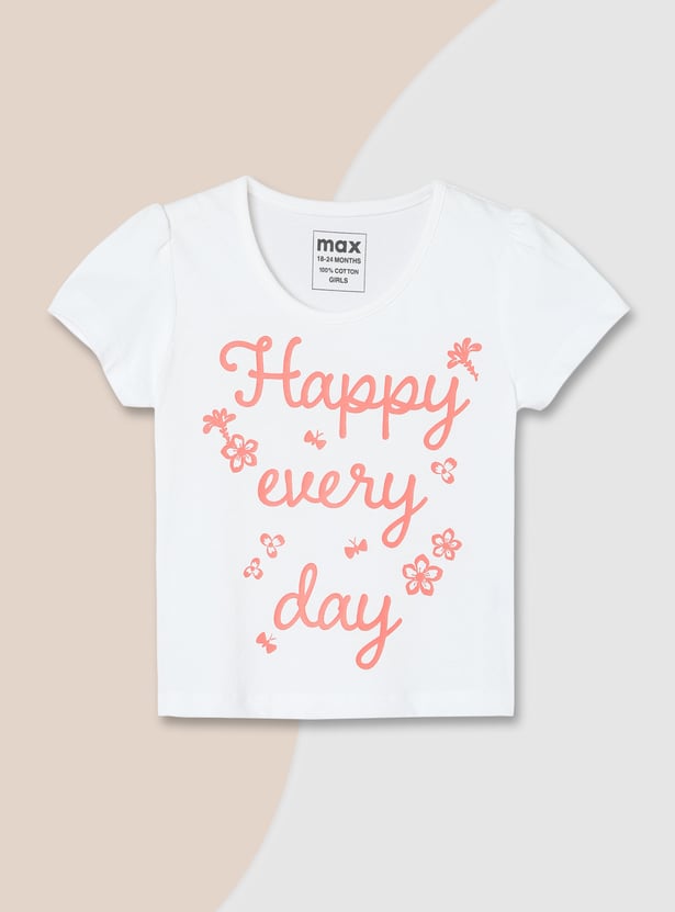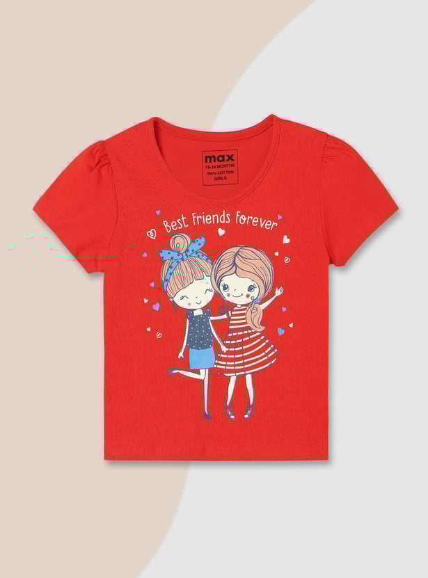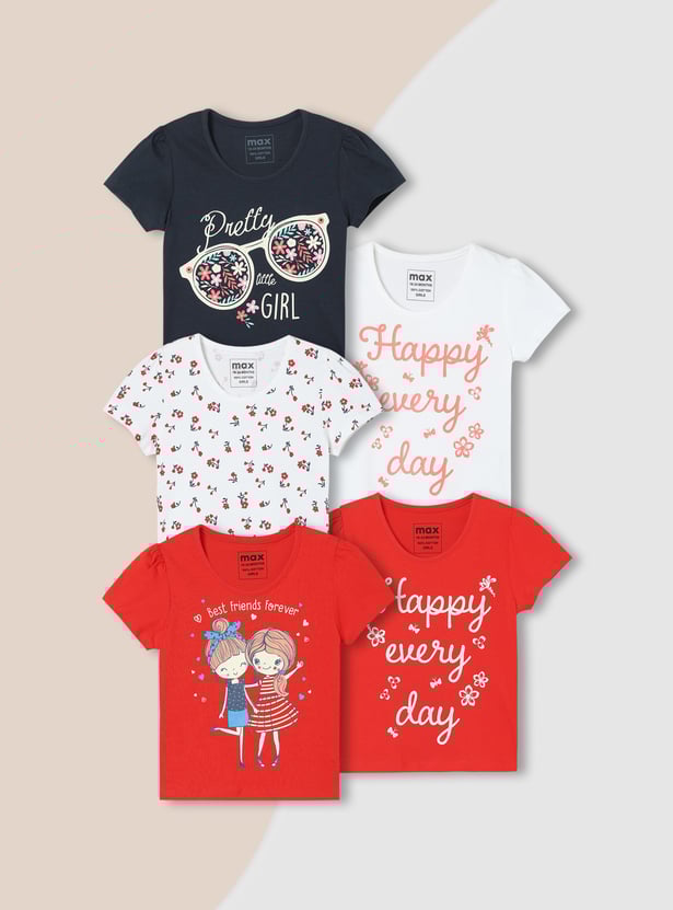 Spruce up her casual wardrobe with this set of T-shirts. It includes five tees with assorted graphic prints and colours, each featuring a round neck and half sleeves.