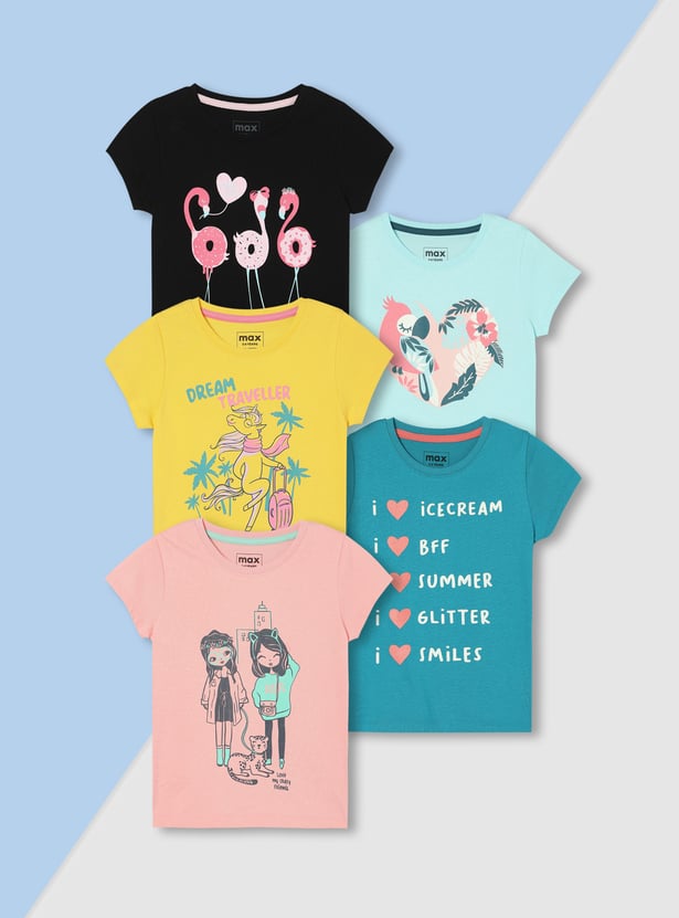 Girls Graphic Printed T-shirt - Pack of 5