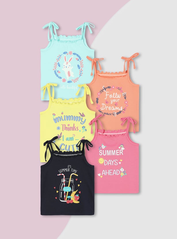 Girls Graphic Printed Top - Pack of 5