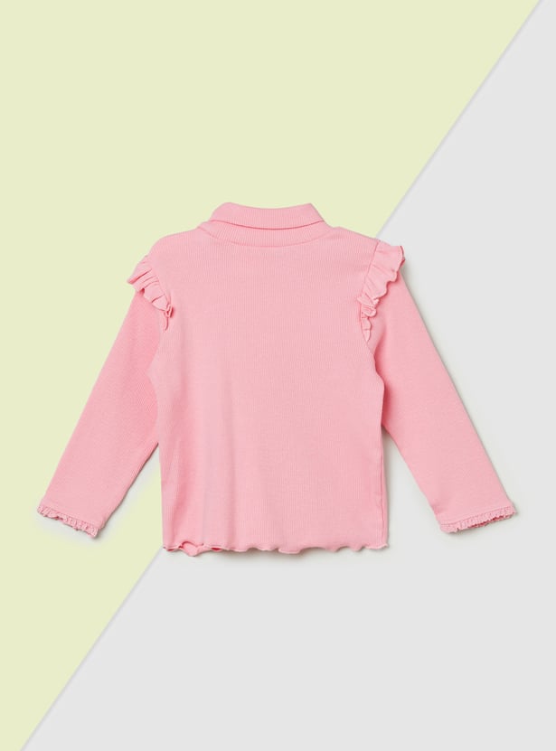 Refresh your casual staples with this pack of two assorted ruffle tops, each styled with a high neck and full sleeves. Delicate ruffle details on the surface add a feminine and playful touch to the designs.