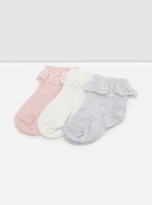 Girls Lace Ankle-Length Socks - Pack of 3
