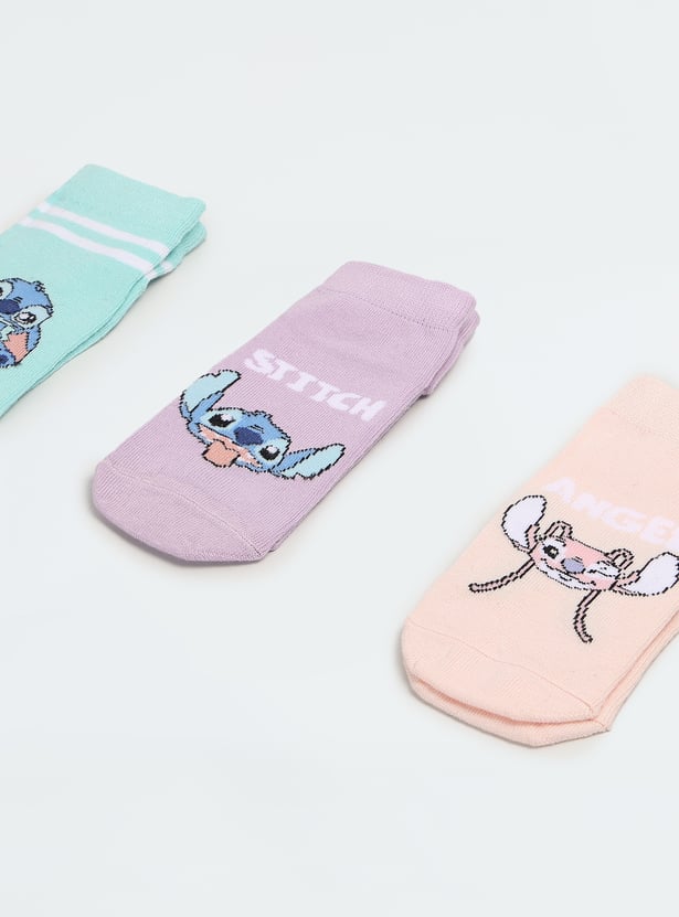 Girls Lilo and Stitch Patterned Socks - Pack of 3