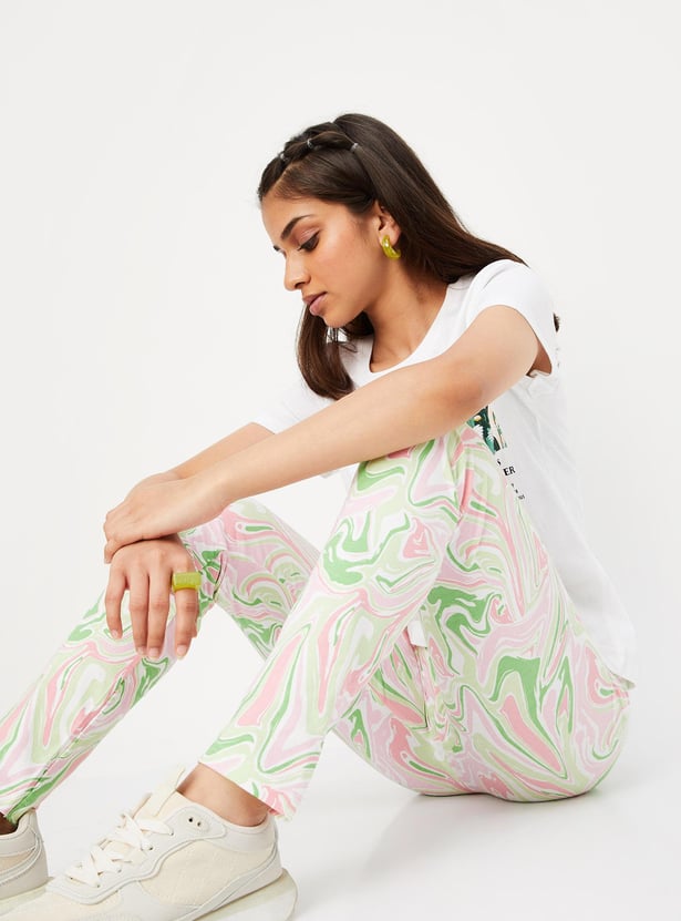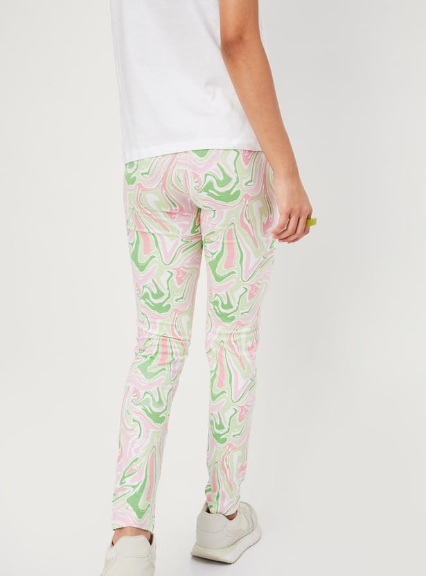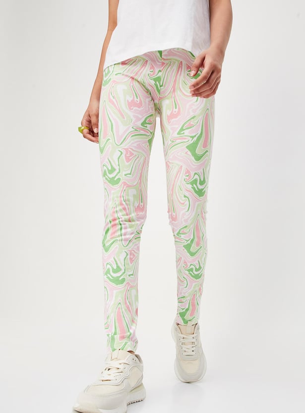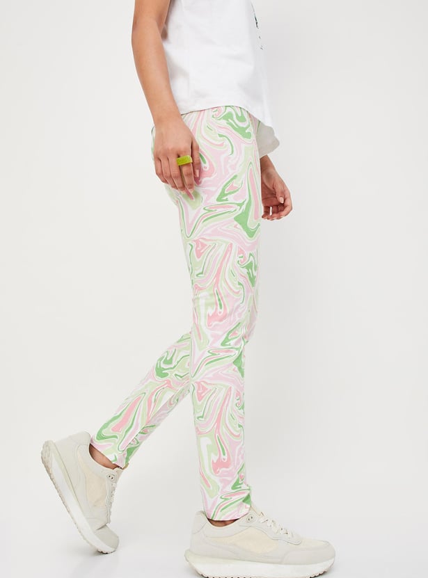 Girls Marble Printed Full-Length Leggings