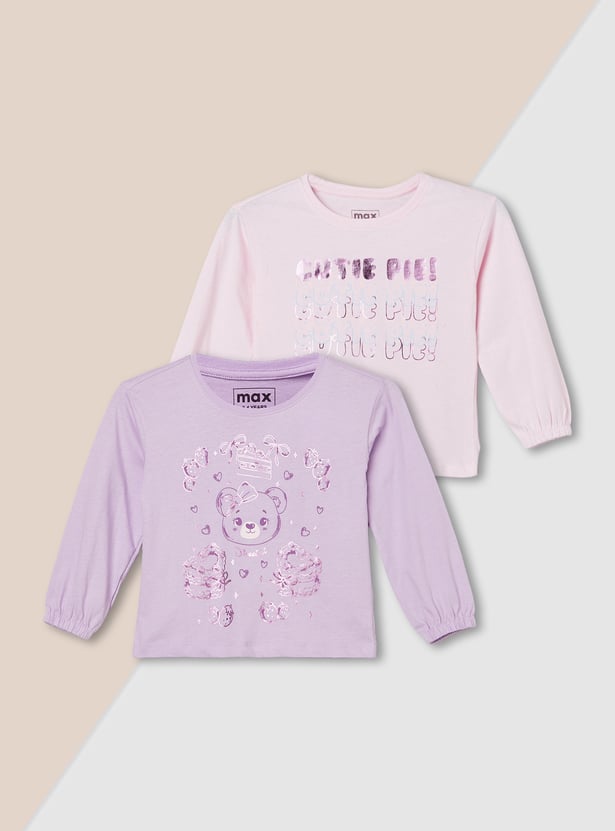 Girls Metallic Print T-shirt - Pack of 2