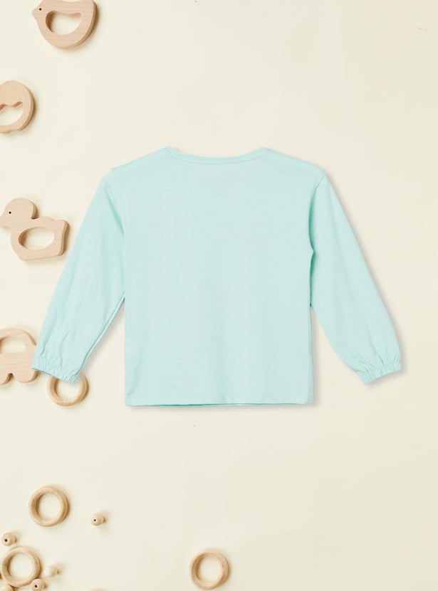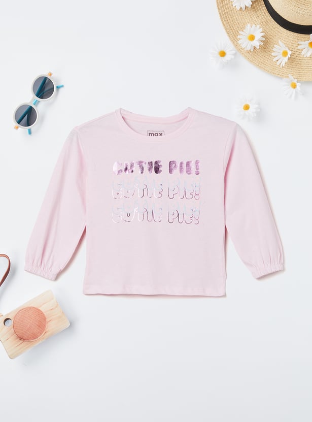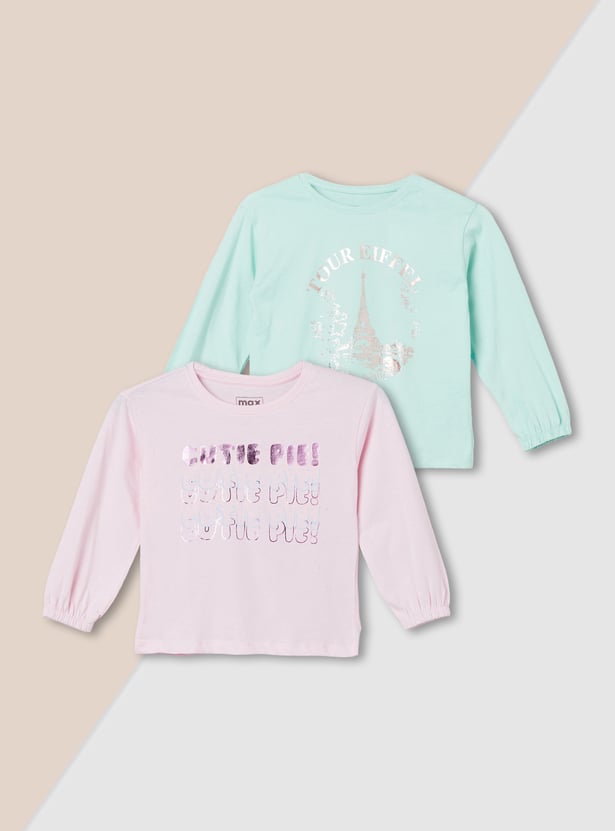 Refresh your kids casual style with this pack of two printed T-shirts featuring a classic round neck, full sleeves, and eye-catching metallic prints for standout style.
