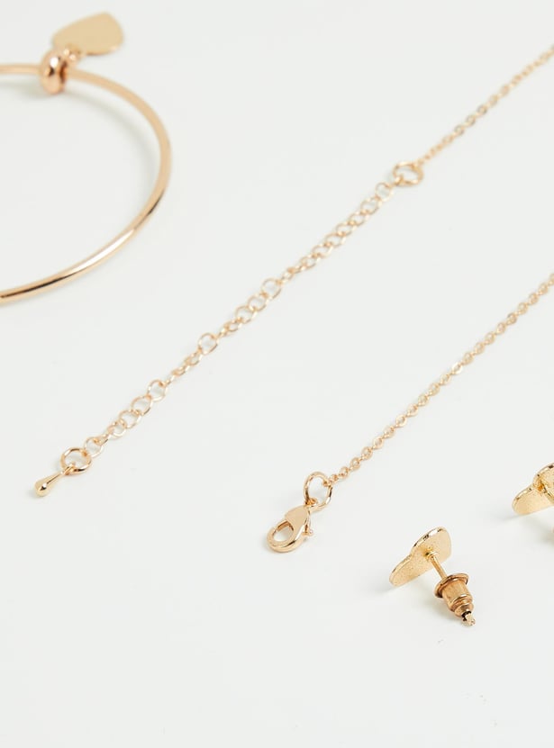 This jewellery set includes a necklace, a pair of earrings, and a bracelet with a lobster clasp. A charm bracelet and a pair of matching stud earrings with post-and-back closures. Your child would look adorable while wearing this set.