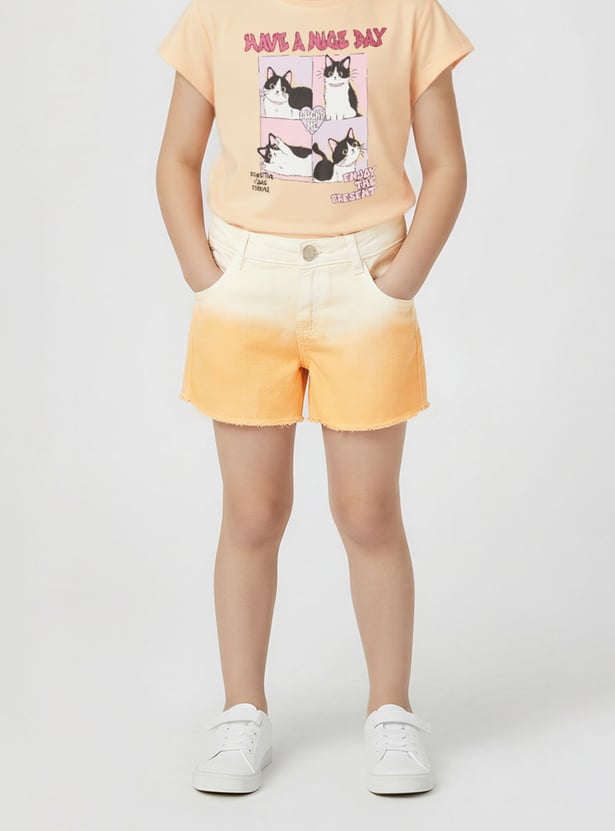 Add a pop of colour to your casual wear with these ombre denim shorts, featuring a mid-rise waist, relaxed fit, and button closure. Designed with five functional pockets, they offer both style and practicality for laid-back days.