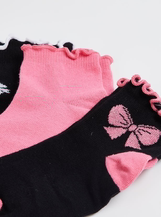 This pack of 3 patterned ankle length socks adds a playful twist to your everyday essentials. Crafted for comfort and breathability, each pair features unique designs that bring a pop of personality to your look