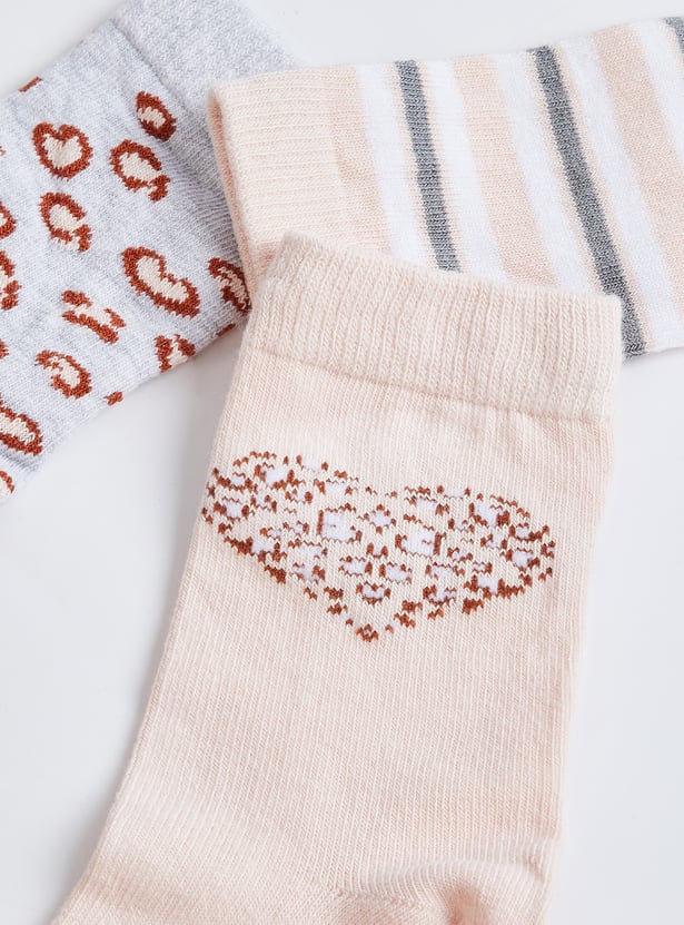 Girls Patterned Ankle Length Socks - Pack of 3