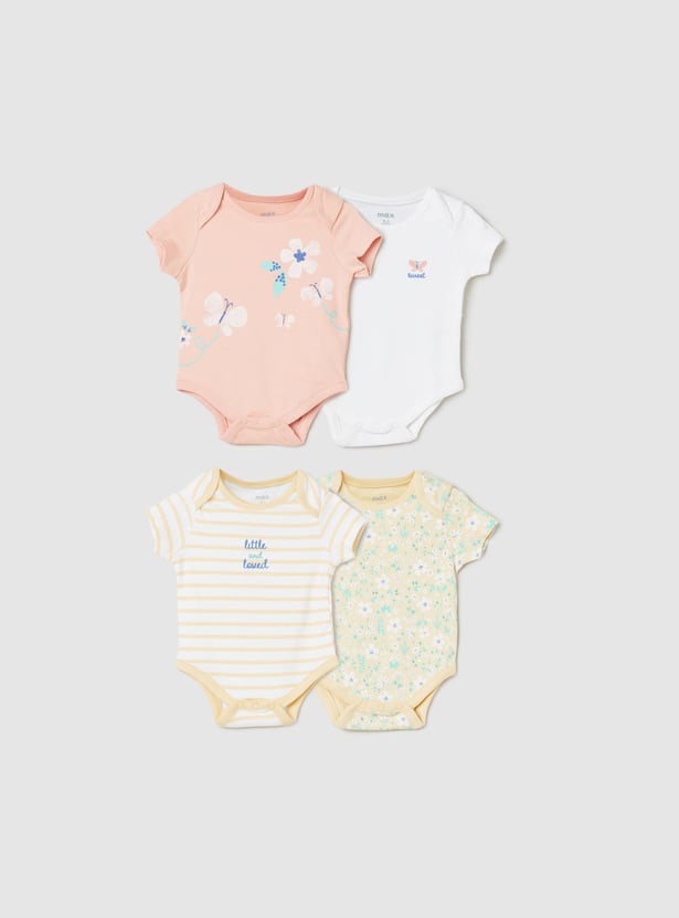 Girls Printed Anti-Bacterial Bodysuit - Pack of 4