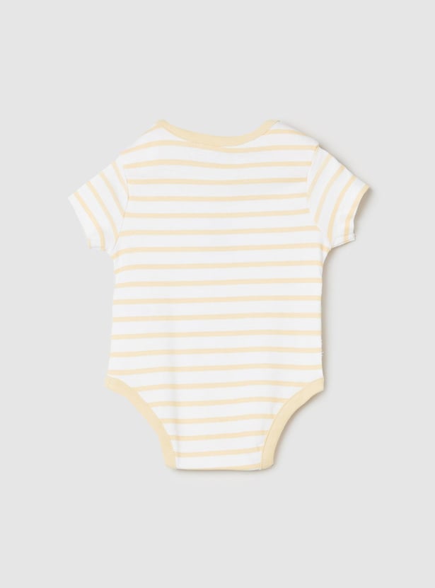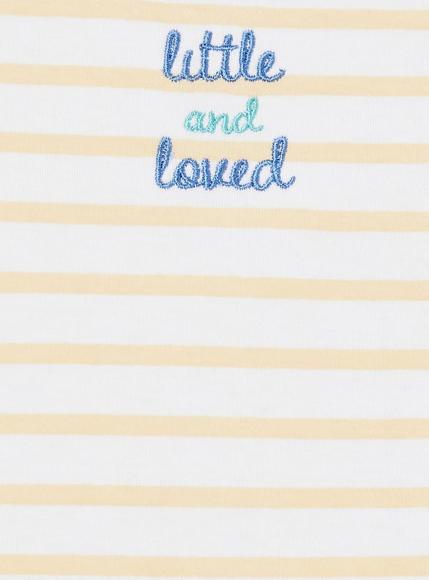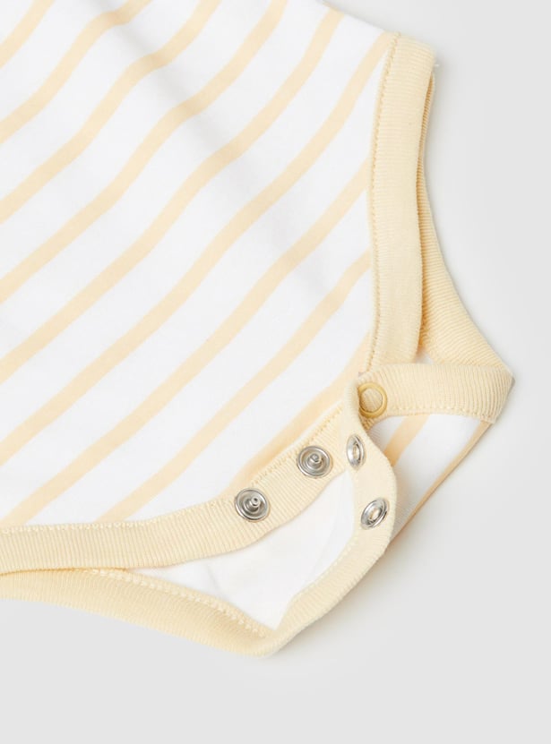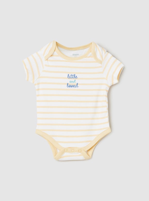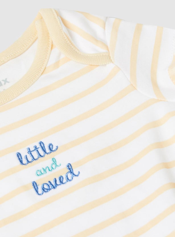 Swaddle your baby in this bodysuit set which is made of an anti-bacterial finish on the fabric. It comes with a printed surface, an envelope neckline, and ring snap closures for easy diaper changes.