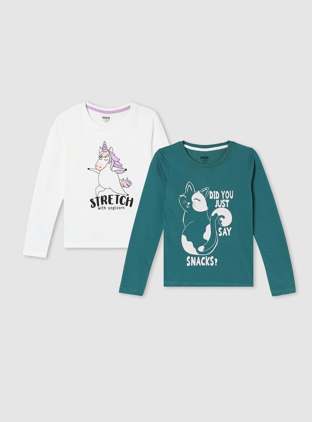 Girls Printed Full Sleeves T-shirt - Pack of 2