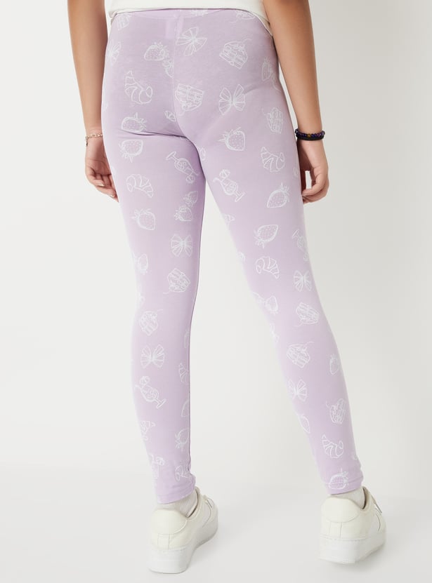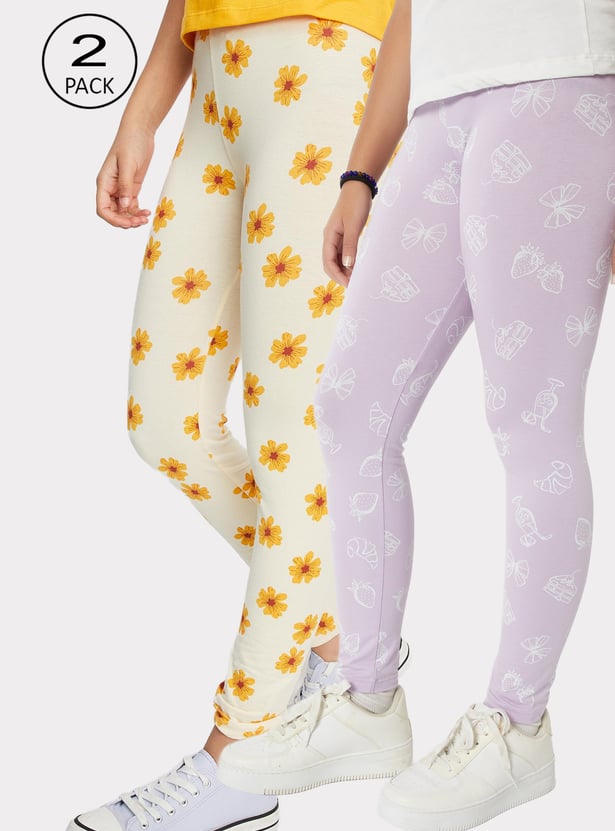 This pack of two printed leggings features full-length silhouettes with a flat elasticated waistband, offering a snug, comfortable fit for everyday movement.
