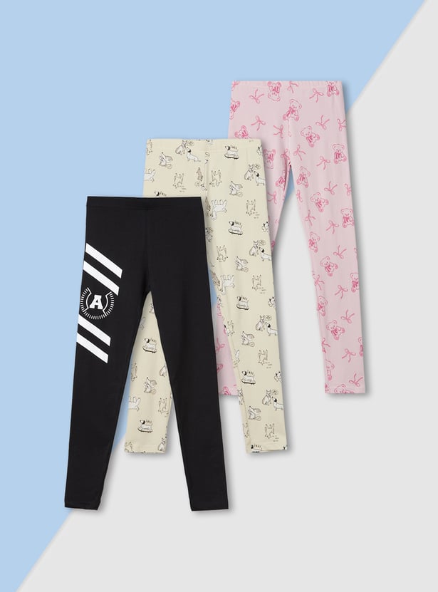 Girls Printed Leggings - Pack of 3