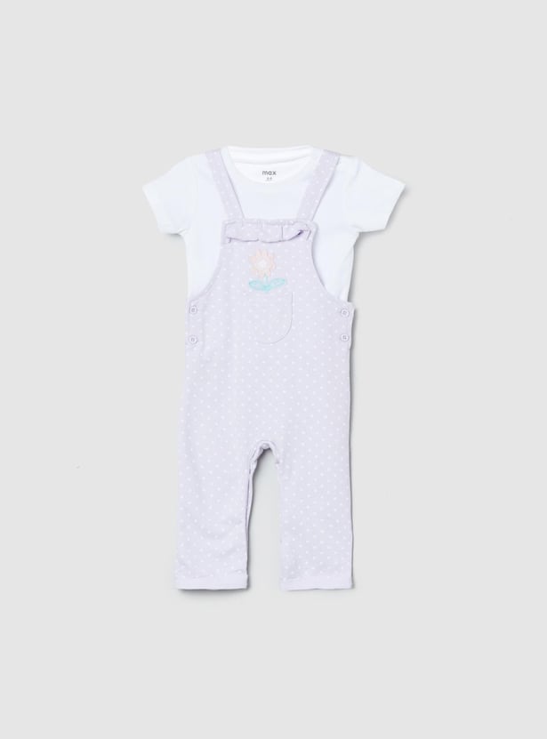 This set for babies comes with a printed romper that features a square neck and button closure along with a solid t-shirt.