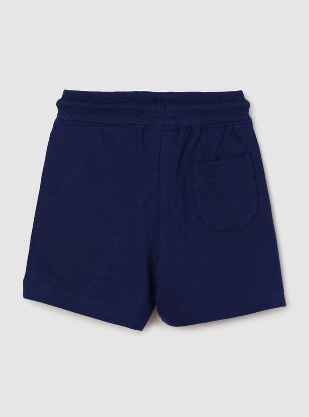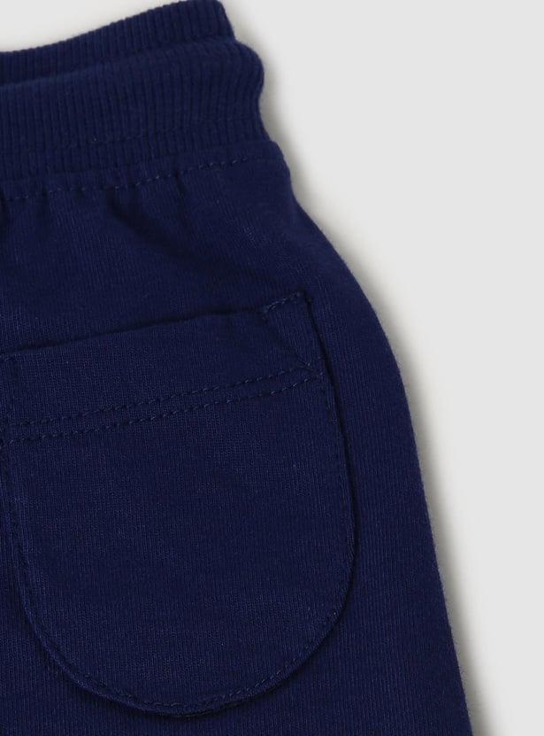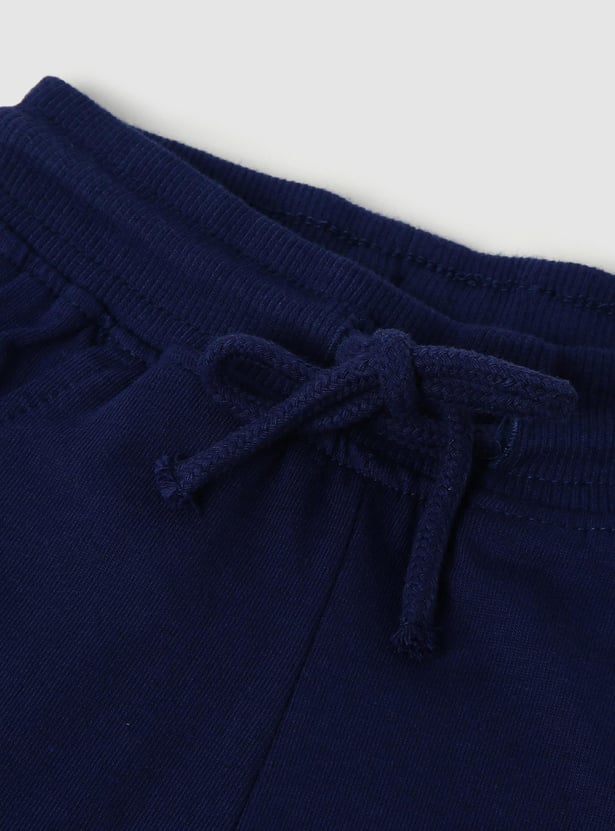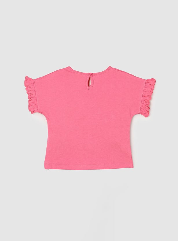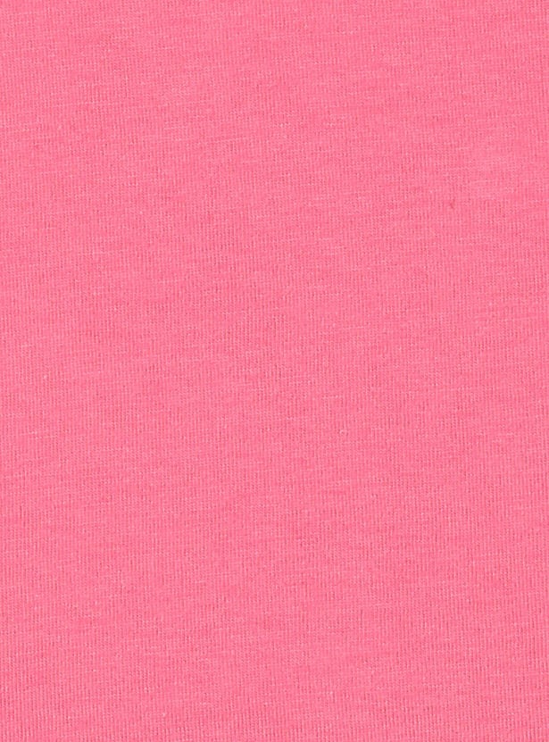 She’ll clock a good night’s sleep in this sleepwear set. It includes a T-shirt with graphic print on the front and applique detailing, a round neckline, and short sleeves with frill trim. The contrasting pair of shorts come with a drawstring waist, side pockets, a back patch pocket, and a bow print above the hem.