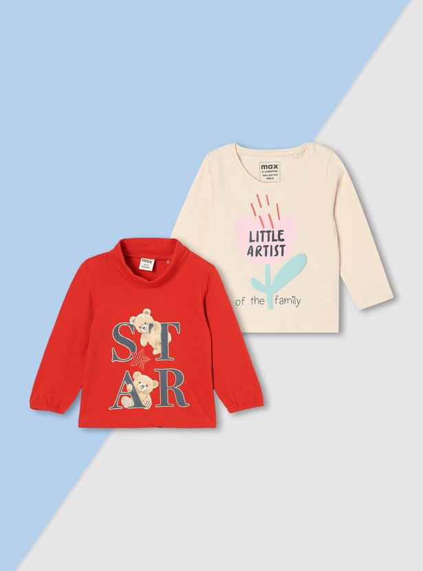 Refresh your wardrobe with this pack of two printed t-shirts, featuring classic round and high necks and full sleeves. The vibrant prints add personality and style to your everyday casual looks.