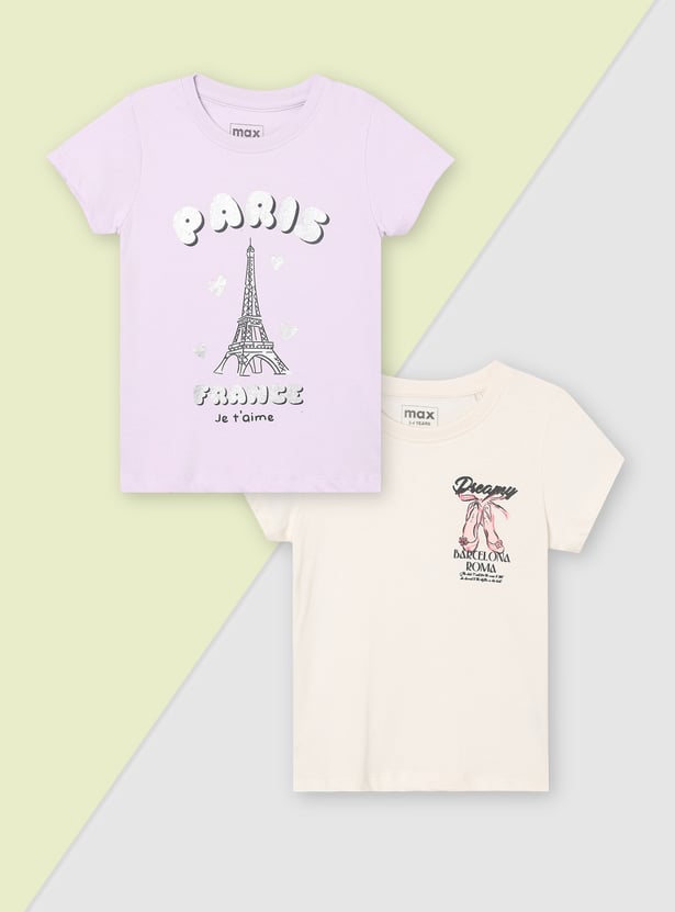 Refresh your casual essentials with this pack of two printed T-shirts, designed with a classic round neck and half sleeves. Crafted for a comfortable fit, these versatile tees are perfect for everyday wear.