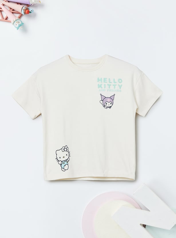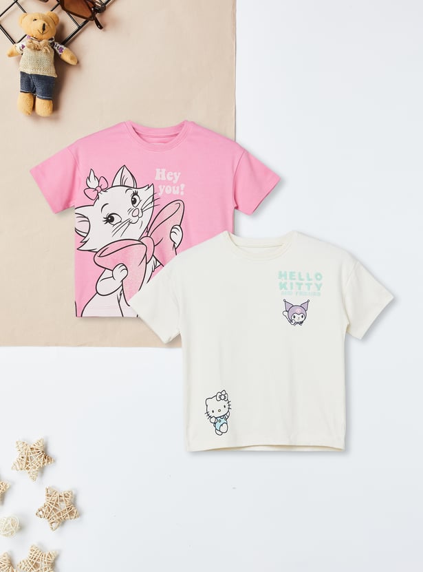 Refresh your casual essentials with this pack of two printed T-shirts. Designed with a classic round neck and half sleeves, one features a playful Hello Kitty print for a fun, stylish touch.