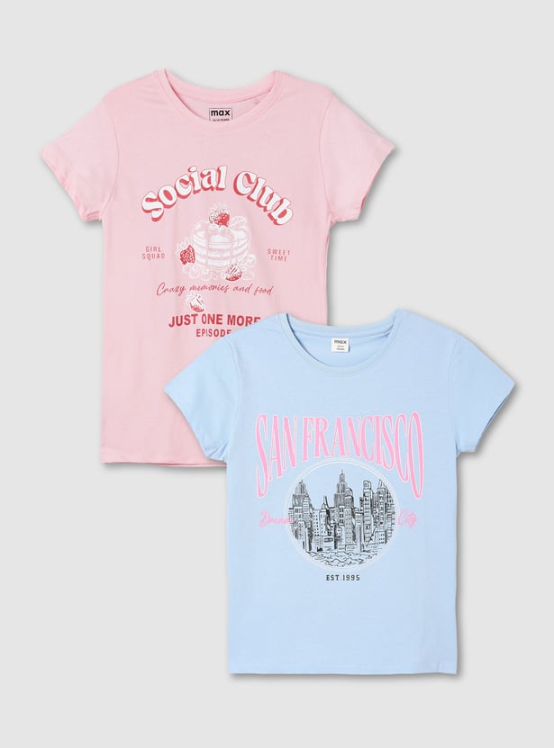 These printed T-shirts, offered in a handy pack of two, feature a round neck and half sleeves for all-day comfort. With eye-catching prints and a relaxed fit, they bring a fun, casual vibe to your everyday wardrobe.