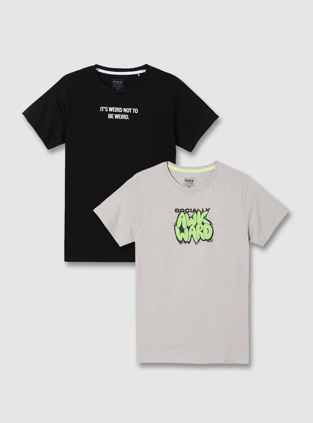 Refresh your everyday wardrobe with this printed t-shirt pack of two, offering casual comfort and style. Each tee features a classic round neck and half sleeves, perfect for easy, laid-back looks.