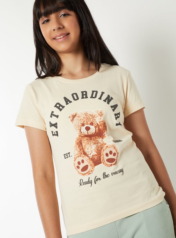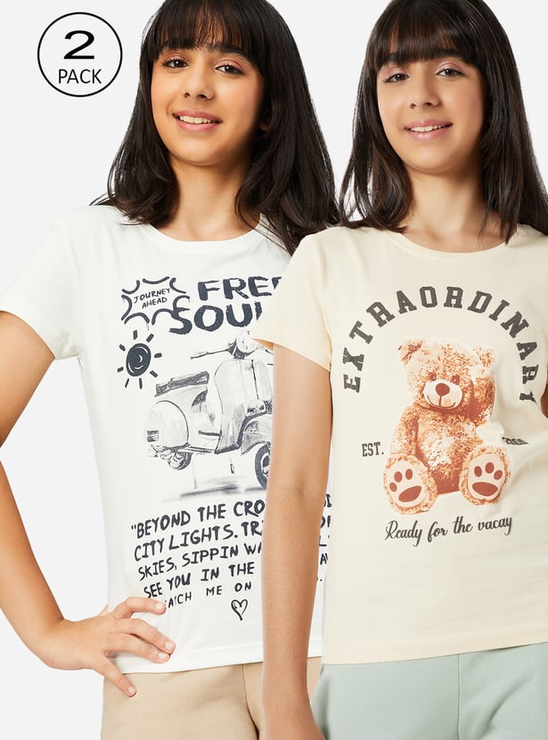 Refresh everyday looks with this pack of 2 printed T-shirts, featuring a round neck and half sleeves. Soft and breathable for all-day comfort.
