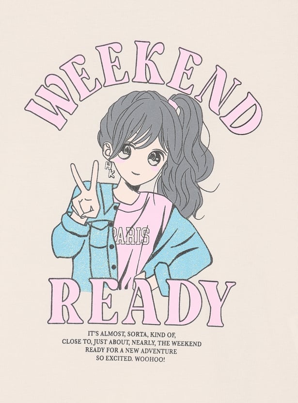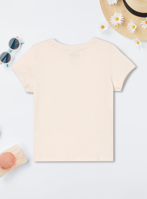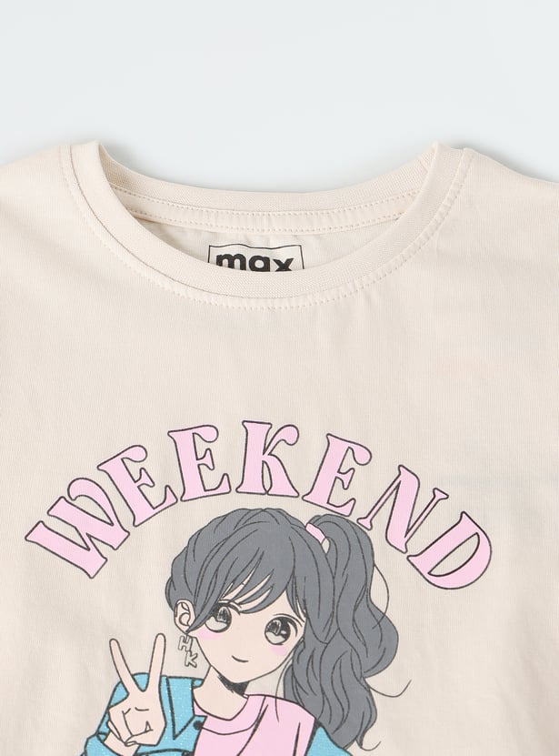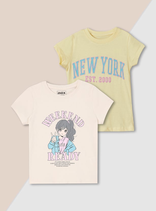 This pack of 2 girls’ printed T-shirts adds fun and colour to her everyday wardrobe. Designed with a classic round neck and half sleeves, each tee offers easy, comfortable styling for casual days.