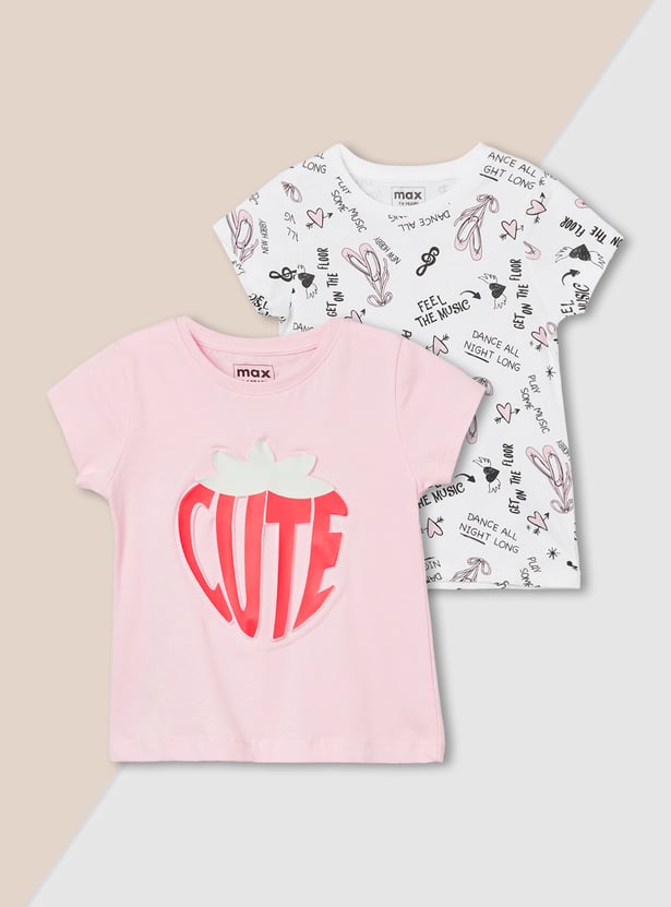 Refresh your basics with this pack of two printed T-shirts featuring a classic round neck and comfortable half sleeves. Designed for an easy, everyday fit perfect for casual wear.