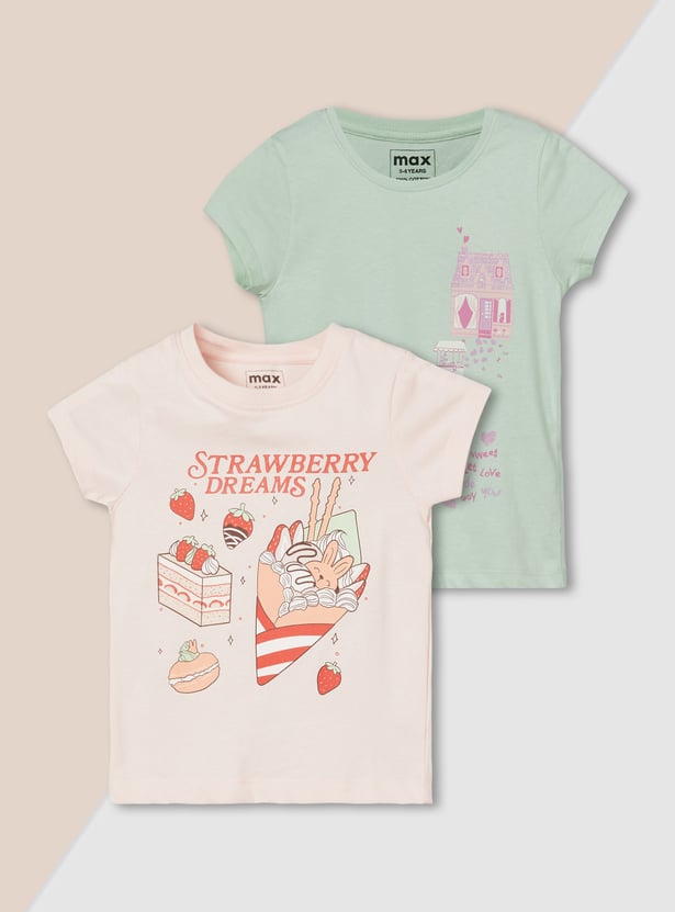 Refresh your casual essentials with this pack of two printed t-shirts, featuring classic round neck and half sleeves. Soft and comfortable, these versatile tees are perfect for everyday wear.