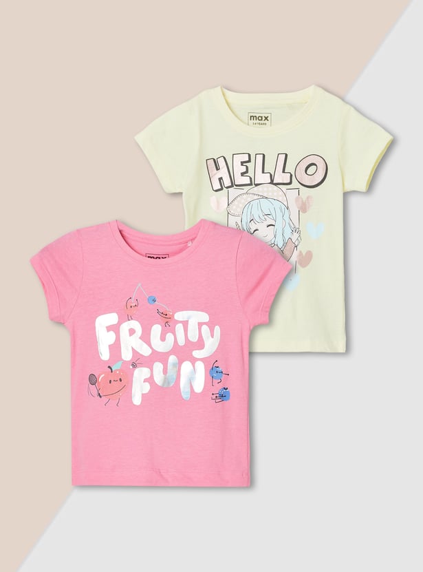 Refresh your essentials with this pack of two printed T-shirts, each designed with a classic round neck and half sleeves for easy, everyday comfort.