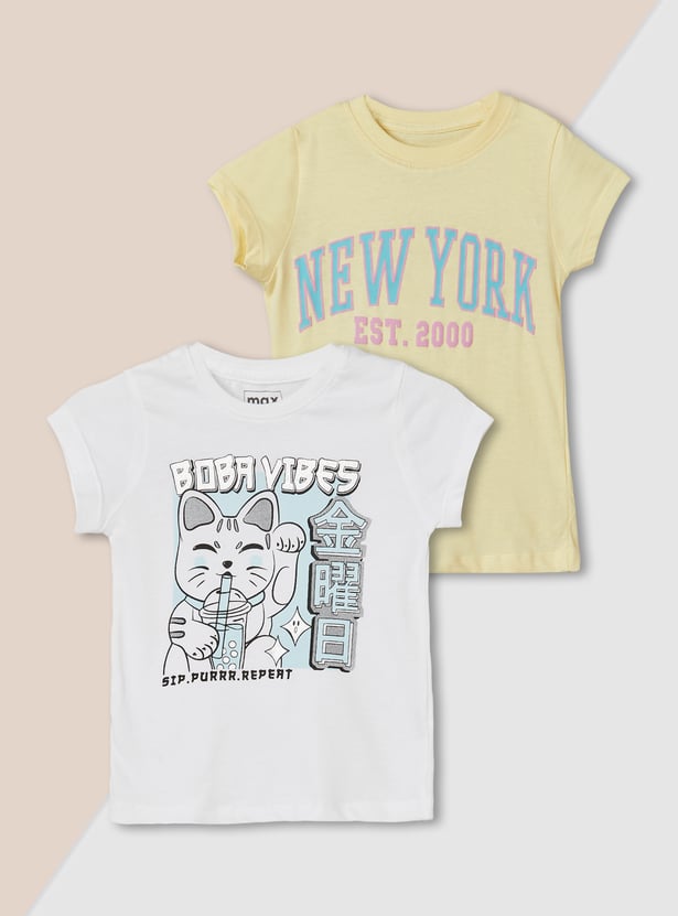 Refresh your essentials with this pack of two printed T-shirts, each designed with a classic round neck and half sleeves for easy, everyday comfort.