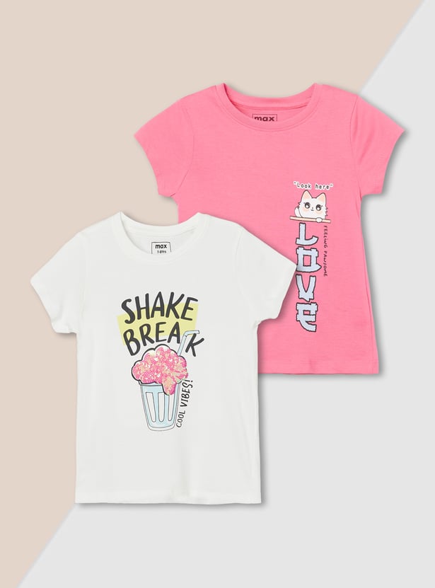 Upgrade your casual staples with this pack of 2 printed T-shirts. Designed with a classic round neck and half sleeves, these tees offer all-day comfort with a stylish edge.