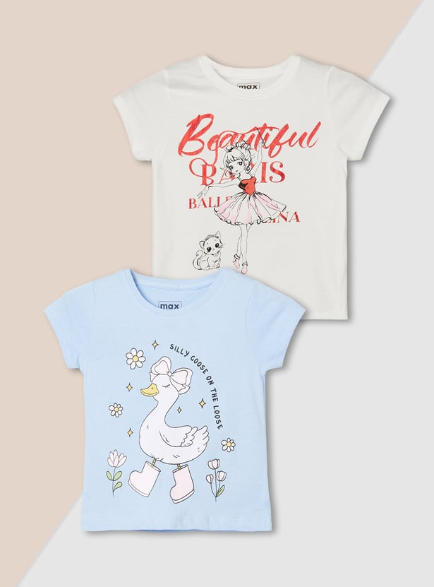 This cheerful pack of two printed T-shirts features classic round necklines and easy half sleeves, offering bright, feel-good designs that elevate everyday dressing.