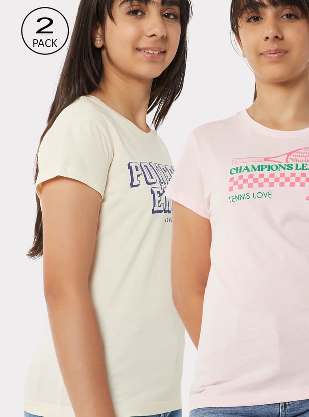 Refresh your casual wardrobe with this pack of two printed T-shirts. Designed with a classic round neck and half sleeves, these versatile tees combine comfort with everyday style.