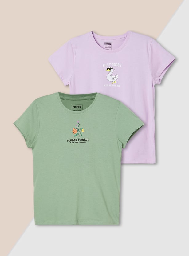 Update your kid's essentials with this pack of 2 printed T-shirts, featuring a classic round neck and half sleeves for versatile, everyday wear.