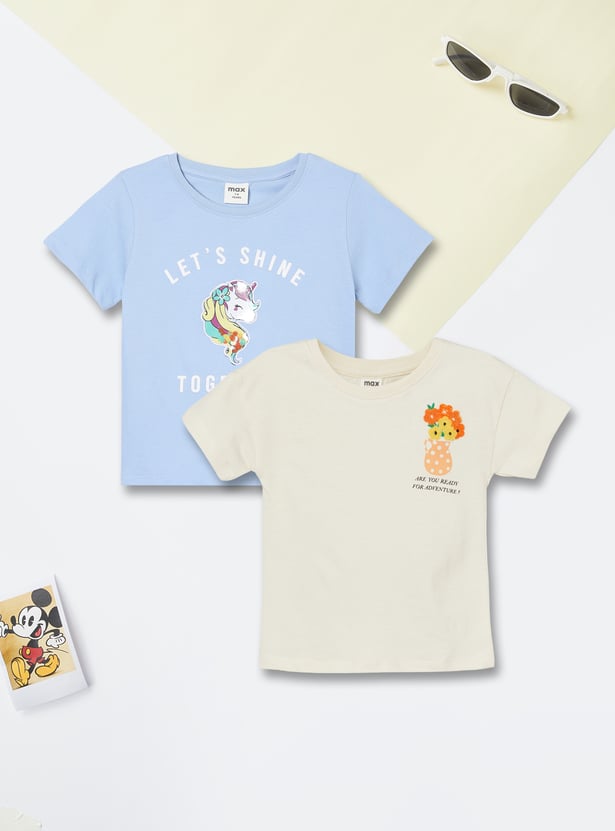 These T-shirts, offered in a handy pack of two, feature a round neck and half sleeves for all-day comfort. One features a front print while the other is striped all-over, adding a fun, casual vibe to your everyday wardrobe.