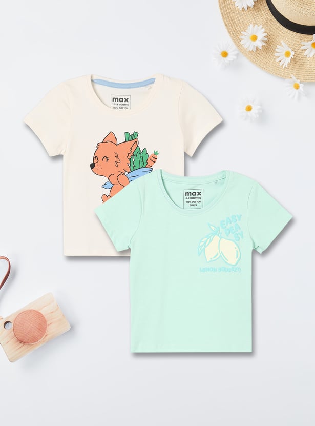 Refresh your basics with this pack of 2 printed T-shirts, each featuring a classic round neck and comfortable half sleeves. Perfect for everyday casual wear with a stylish twist.