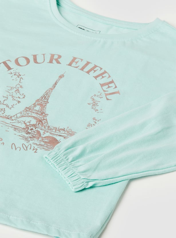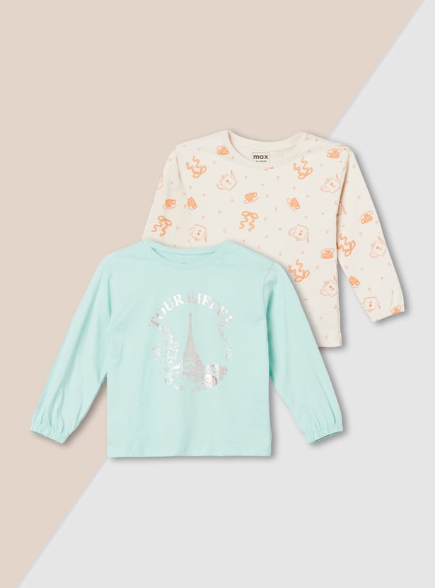 Brighten up her everyday wardrobe with this playful pack of two printed T-shirts featuring a comfy round neck and full sleeves.
