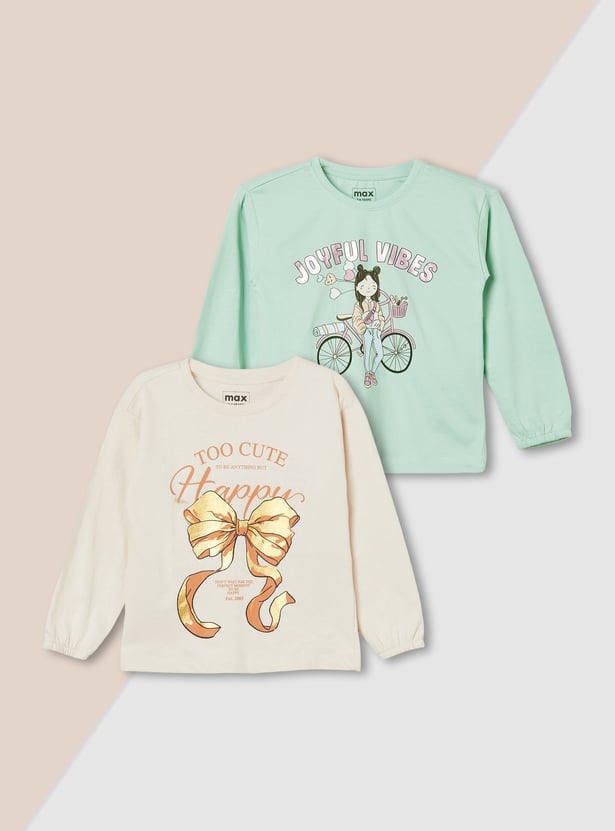 Refresh your everyday staples with this pack of two printed T-shirts featuring a classic round neck and full sleeves for a comfortable, relaxed fit.