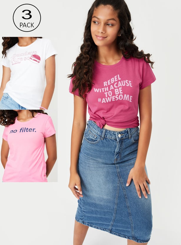 Girls Printed T-shirt - Pack of 3