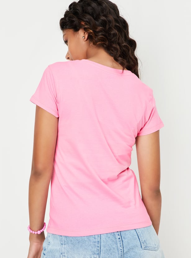 Upgrade her wardrobe with this set of T-shirts. The set includes three T-shirts with assorted prints, each featuring a round neck and half sleeves, offering a variety of stylish options for everyday wear.