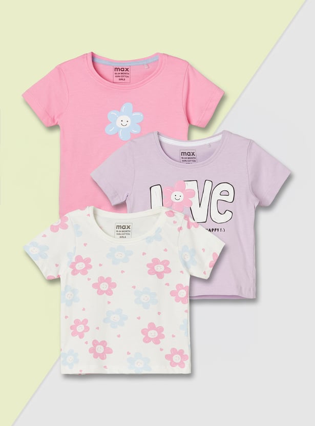 Girls Printed T-shirt - Pack of 3