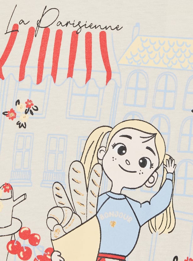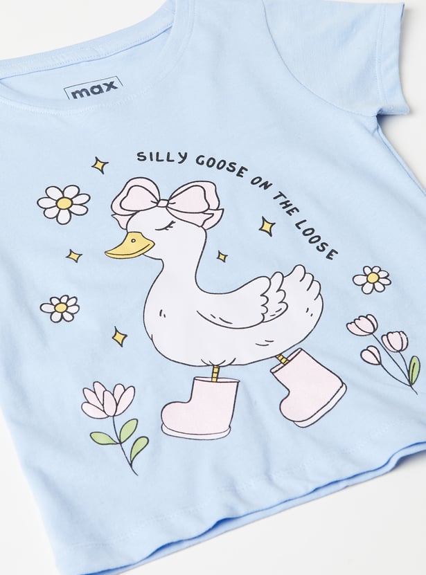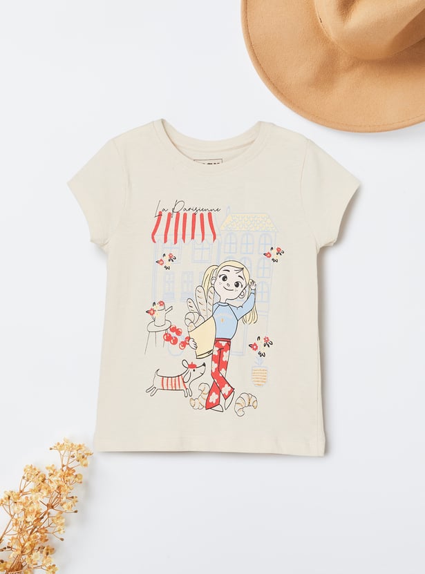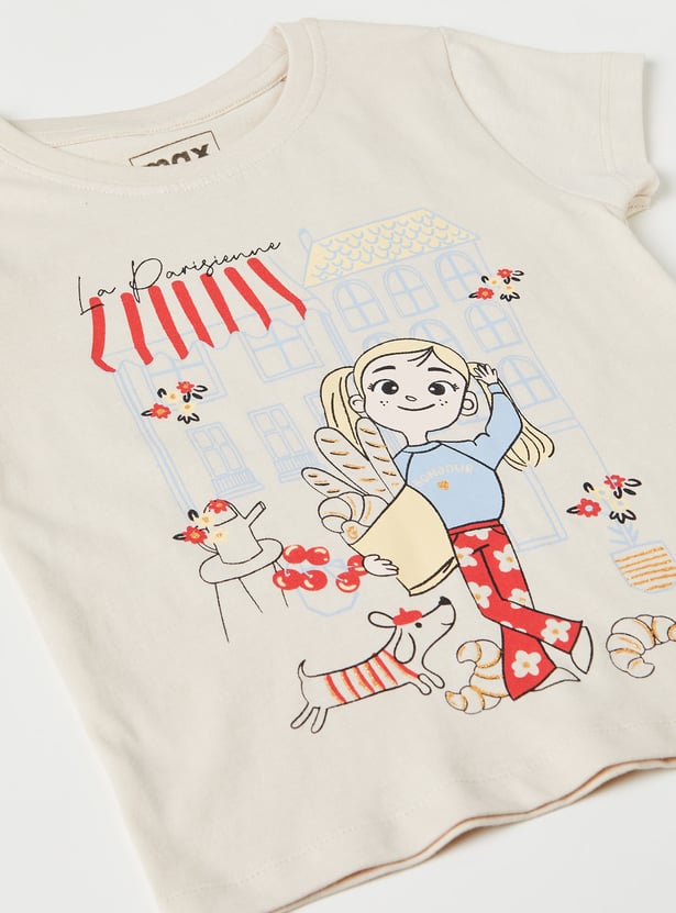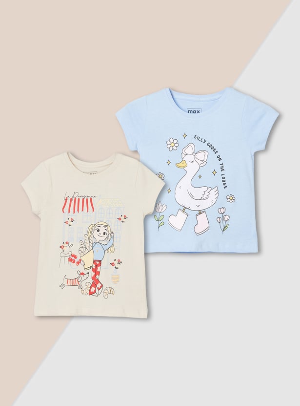 This girls’ printed T-shirt Pack of 2 features round necks and half sleeves, decorated with vibrant prints for a fun and casual look. Perfect for everyday wear, these tees offer comfort and effortless style.