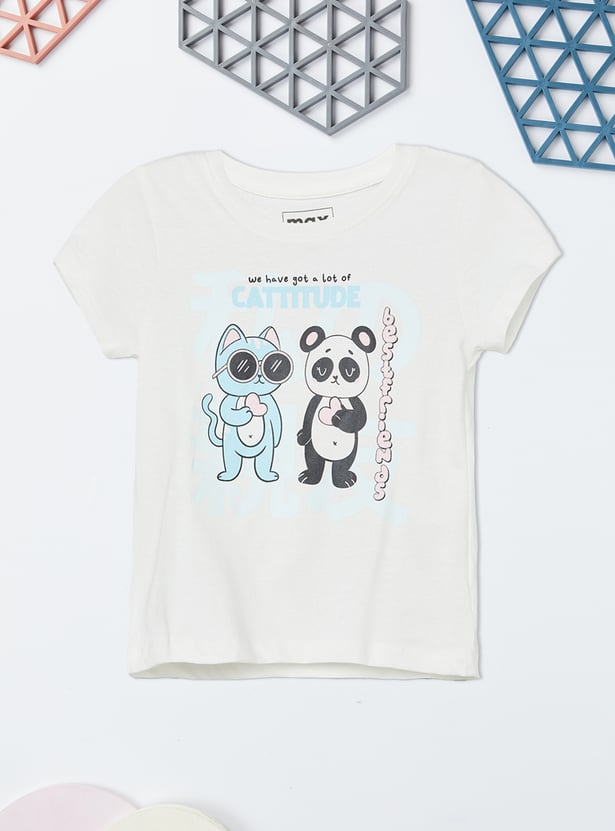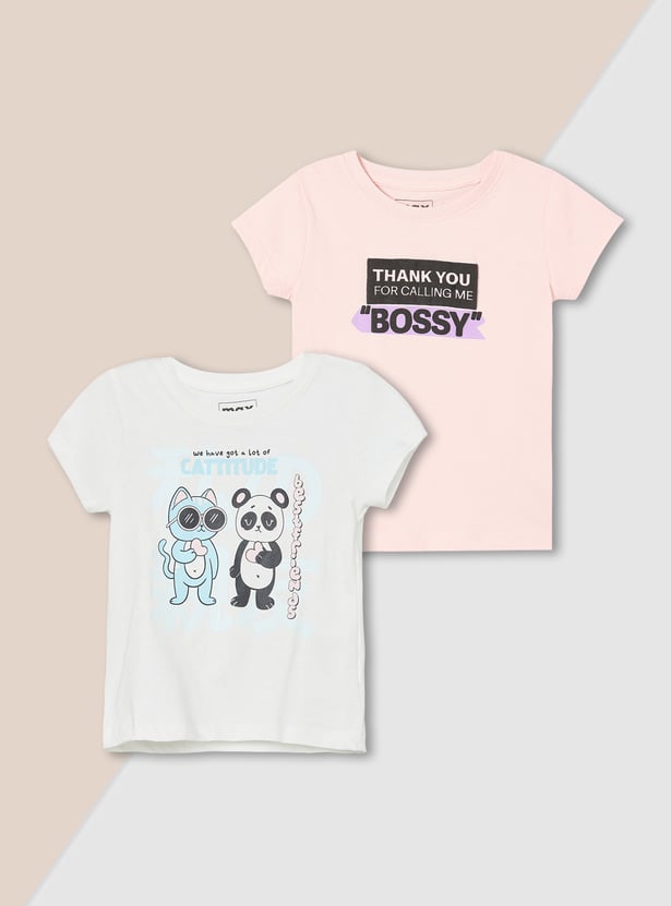 Keep her casual wardrobe fun and comfortable with this pack of 2 printed t-shirts, featuring round necks and half sleeves. Soft and versatile, they’re perfect for everyday wear.