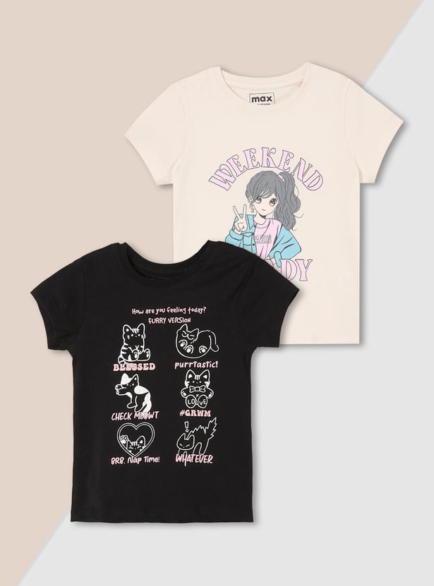Girls Printed T-shirts - Pack of 2
