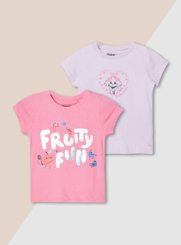 Upgrade her everyday essentials with this pack of two printed T-shirts featuring a classic round neck and comfortable half sleeves for easy, all-day wear.