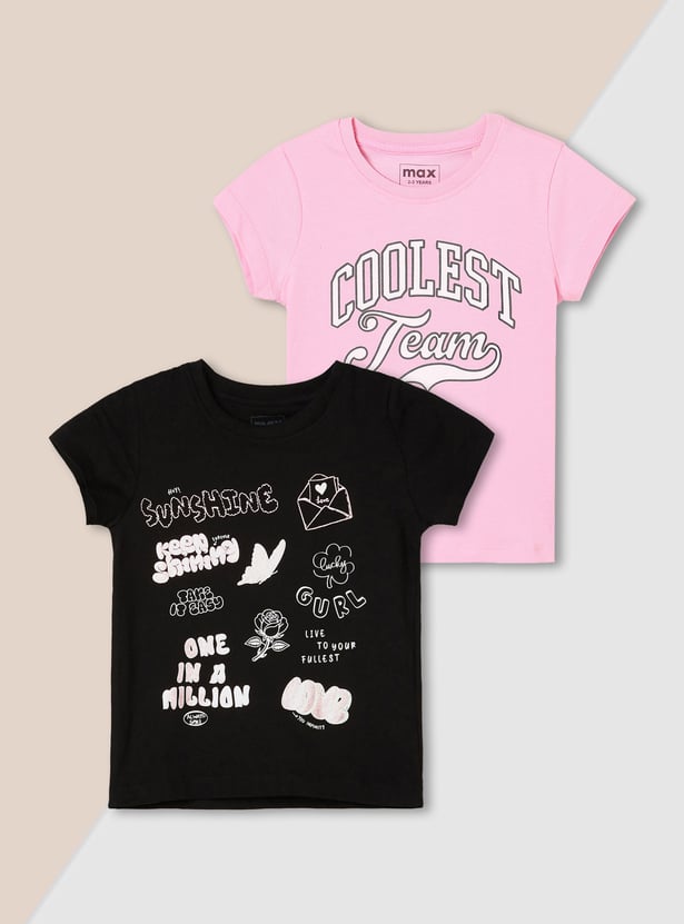 Upgrade her everyday essentials with this pack of two printed T-shirts featuring a classic round neck and comfortable half sleeves for easy, all-day wear.