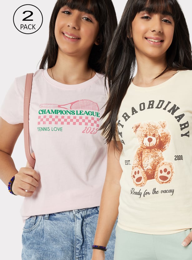 Girls Printed T-shirts - Pack of 2