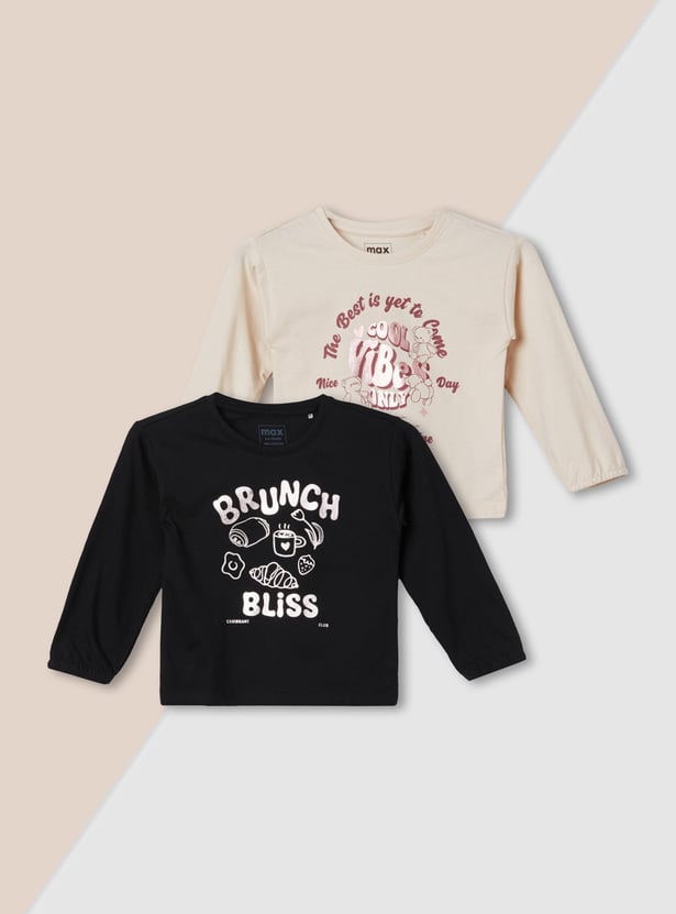 Add effortless style to your wardrobe with this pack of 2 printed T-shirts. Featuring a classic round neck and full sleeves, these tees combine everyday comfort with playful prints.